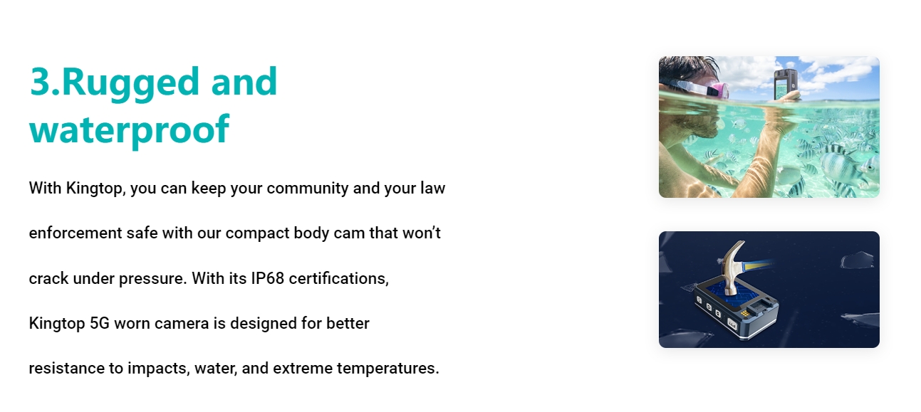 In conclusion, KingTop stands out as a manufacturer that provides high-quality products catering to industry standards and certifications. By adhering to these standards and obtaining relevant certifications, KingTop demonstrates its commitment to delivering reliable and compliant solutions to its customers. With a focus on industry guidelines, certifications such as CJIS compliance, NIST recommendations, FCC regulations, IP ratings, MIL-STD specifications, and privacy regulations, KingTop ensures that its products meet the highest quality and performance requirements, making them an excellent choice for law enforcement agencies seeking dependable and compliant body camera solutions.