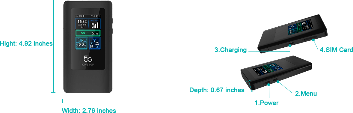 On the other hand, the KingTop 5G MiFi KT-M2A opts for a more traditional design with a smaller, monochrome display. While it may not have the same visual flair as the m2000, it offers simplicity and practicality. The compact design makes it highly portable, allowing users to slip it into their pockets or bags without much hassle. The monochrome display, though smaller, still provides essential information in a clear and concise manner.