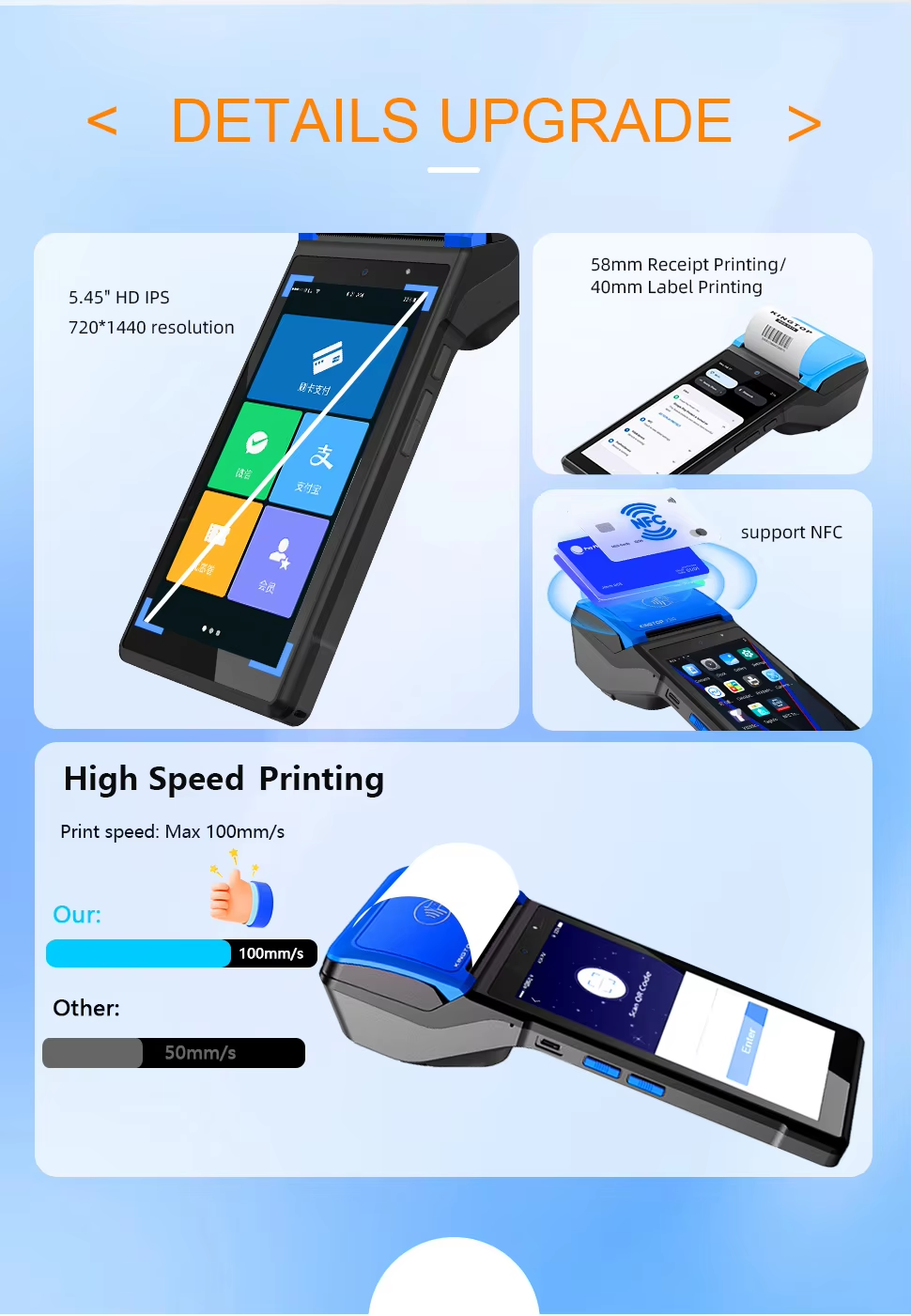 The built-in GPS positioning feature is another valuable addition, especially for delivery services or mobile vendors who need to track their location or optimize routes. The POS printer also supports Bluetooth printing mode and ESC/POS mode, enabling compatibility with a wide range of printers and peripherals. These connectivity options collectively improve operational efficiency, reduce downtime, and enhance user convenience.