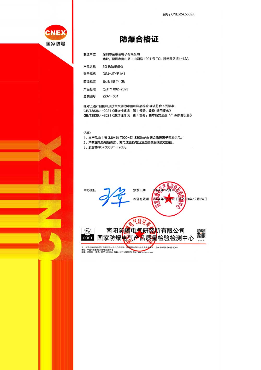 National Explosion-Proof Certification for Kingtop 's 5G Body worn camera is a