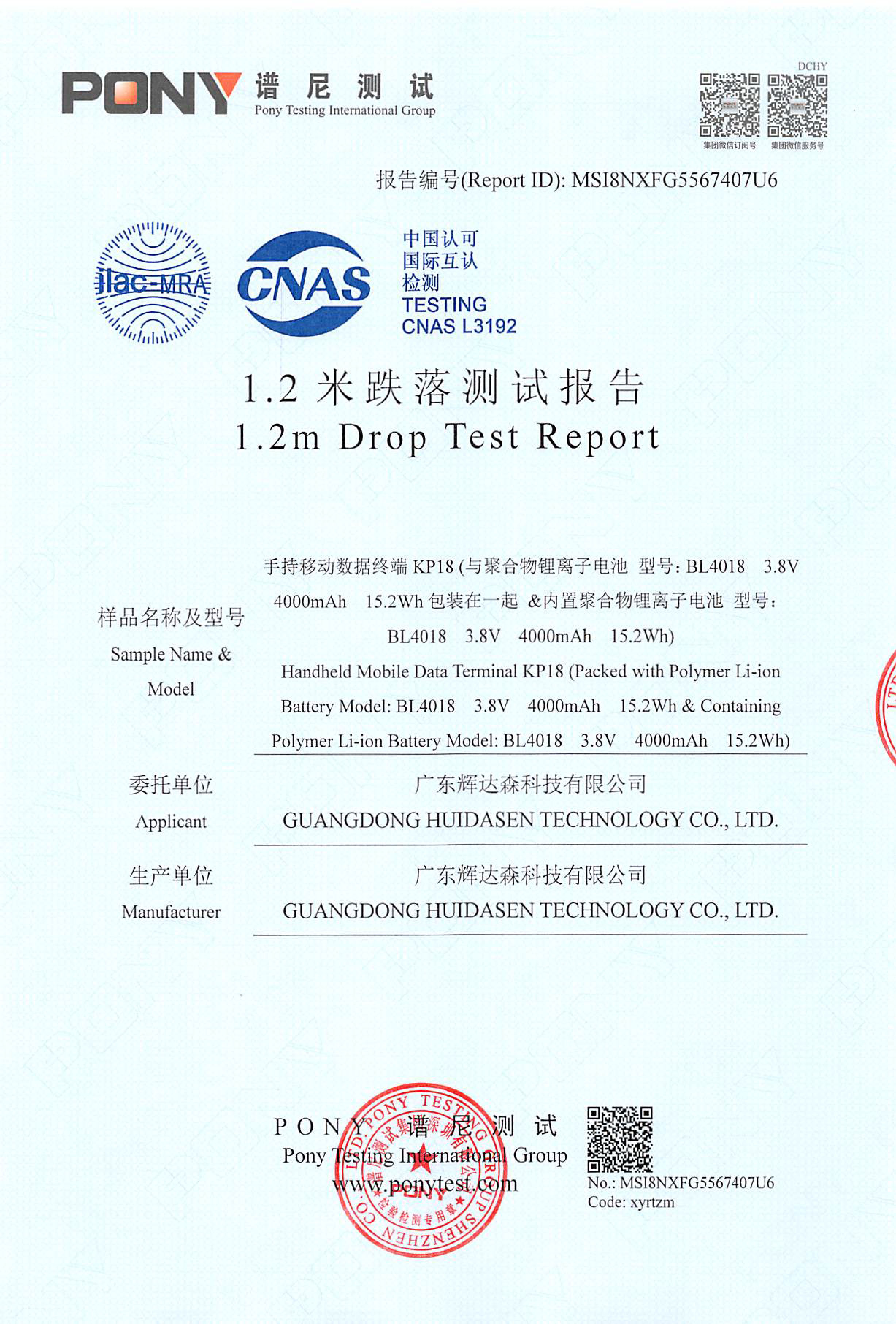 The KT-KP18, designed for demanding environments, underwent Pony Testing’s stringent evaluation protocol, which included mechanical stress tests, environmental simulations, and functional performance validations. The highlight of the certification process was the 1.2-meter (4-foot) drop test—a benchmark exceeding many industry standards—where the device was subjected to six directional drops (front, back, left, right, top, and bottom) onto steel plates. Post-test inspections confirmed zero critical failures, with full retention of scanning accuracy, touchscreen responsiveness, and battery integrity.