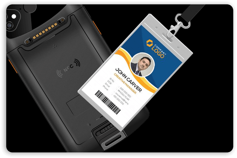 Built-in NFC module enables employee attendance punch in, fast item identification, and more.